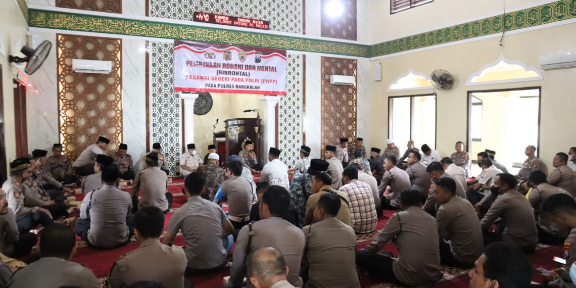 BANGKALAN |nusantarajayanews.id – Personel Polres Bangkalan melaksanakan kegiatan pembinaan rohani dan mental (Binrohtal) rutin setiap hari Kamis (24/11/2022). Binrohtal yang dilaksanakan secara rutin di Masjid Radulatul Hidayah ini turut dihadiri oleh Pejabat Utama Polres Bangkalan, bintara, serta ASN Polres Bangkalan.