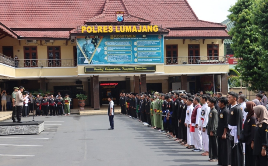 Apel dipimpin Kapolres Lumajang AKBP Dewa Putu Eka Darmawan dan Dandim 0821 Lumajang Letkol Czi Gunawan Indra dengan diikuti puluhan pendekar terdiri dari 21 perguruan silat Se- Kabupaten Lumajang.
