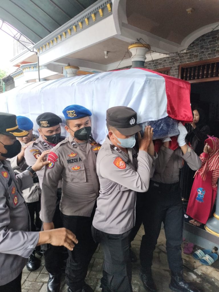 SURABAYA |nusantarajayanews.id – Dirpolairud Polda Jawa Timur, Kombes Pol Puji Hendro Wibowo, bersama Karo SDM. Rabu (30/11/2022) siang, menyambut jenazah Briptu (Anumerta) Muhammad Khoirul Anam, personel Ditpolairud Korpolairud Baharkam Polri di kediaman Almarhum, RT 01, RW 01, Desa Milangsari, Kecamatan Panekan, Kabupaten Magetan.