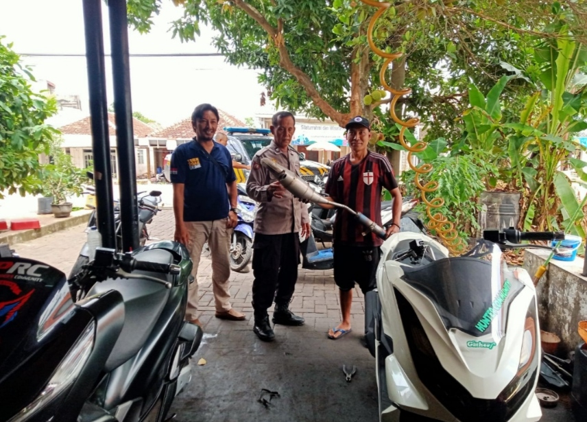 Untuk itu, Bhabinkamtibmas Polsek Ujungpangkah Aipda Yones bersama tim melakukan sosialisasi kepada bengkel dan penjual knalpot agar tak melayani pembelian maupun penjualan knalpot brong.