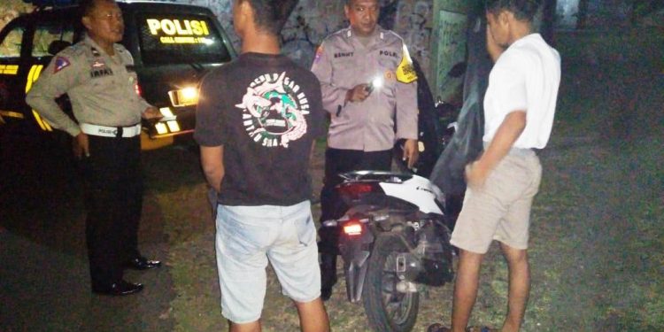 Petugas Patroli Blue Light Polsek Kertosono Himbau secara Edukatif & Humanis kepada Sejumlah Pemuda yang tengah asyik nongkrong di pinggir Jalan sekitar Kelurahan Banaran Kecamatan kertosono , Jum’at (2/12/2022).