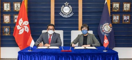 Penandatangan MoU digelar di Markas Kepolisian Hong Kong, Senin (19/12/2022). Hadir dalam pertemuan tersebut Assistance Commissioner Chung Wing-man, Pelaksana Tugas Direktur Kejahatan dan Keamanan Kepolisian Hong Kong, serta Konsul Jenderal RI di Hong Kong, Ricky Suhendar.