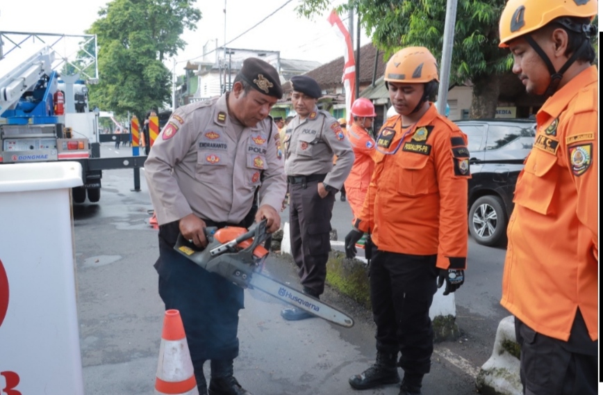 Jember |nusantarajayanews.id – Dalam rangka memperingati Bulan Kesehatan dan Keselamatan Kerja (K3) Nasional Tahun 2023, Kapolres Jember AKBP. Hery Purnomo SIK. SH., bersama jajaran Forkopimda menandatangani kesepekatan kegiatan gerpas pohon ( pemotongan ranting pohon yang dinilai membahayakan ketika terjadi angin kencang ).
