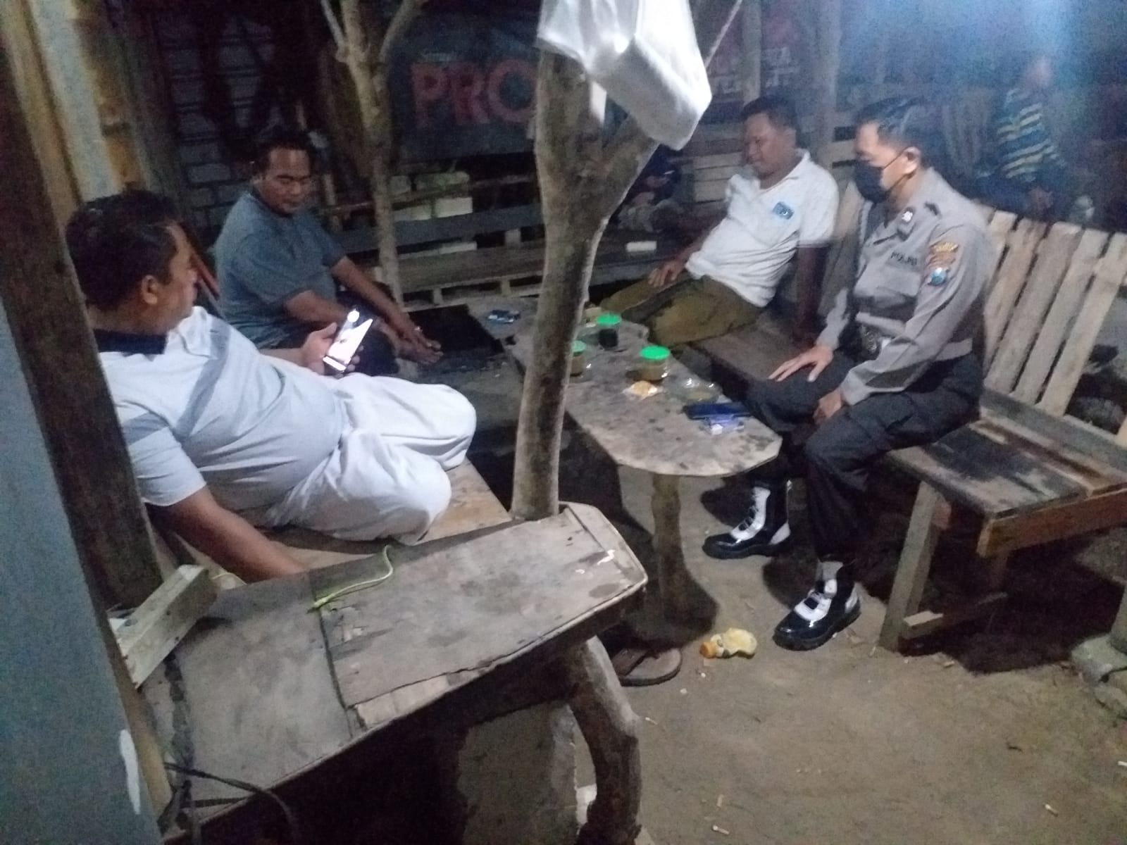 Polisi membaur cangkruk bareng warga pada Jumat 6, Januari 2023.