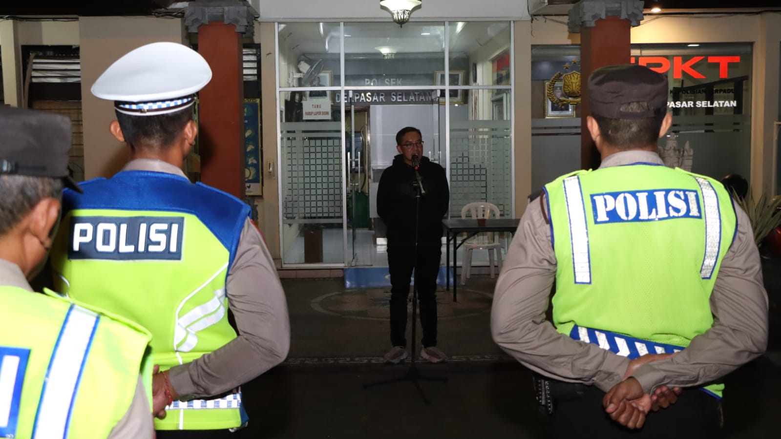 Bali Denpasar|nusantarajayanews.id, Kapolresta Denpasar Kombes Pol. Bambang Pamungkas S.H., S.I.K.,M.Si. Atensi Malam Minggu antisipasi gangguan kamtibmas di wilayah Denpasar Selatan dengan didahului apel kesiapan bertempat di halaman Mapolsek Denpasar Selatan pada Sabtu (6/5/23) malam.