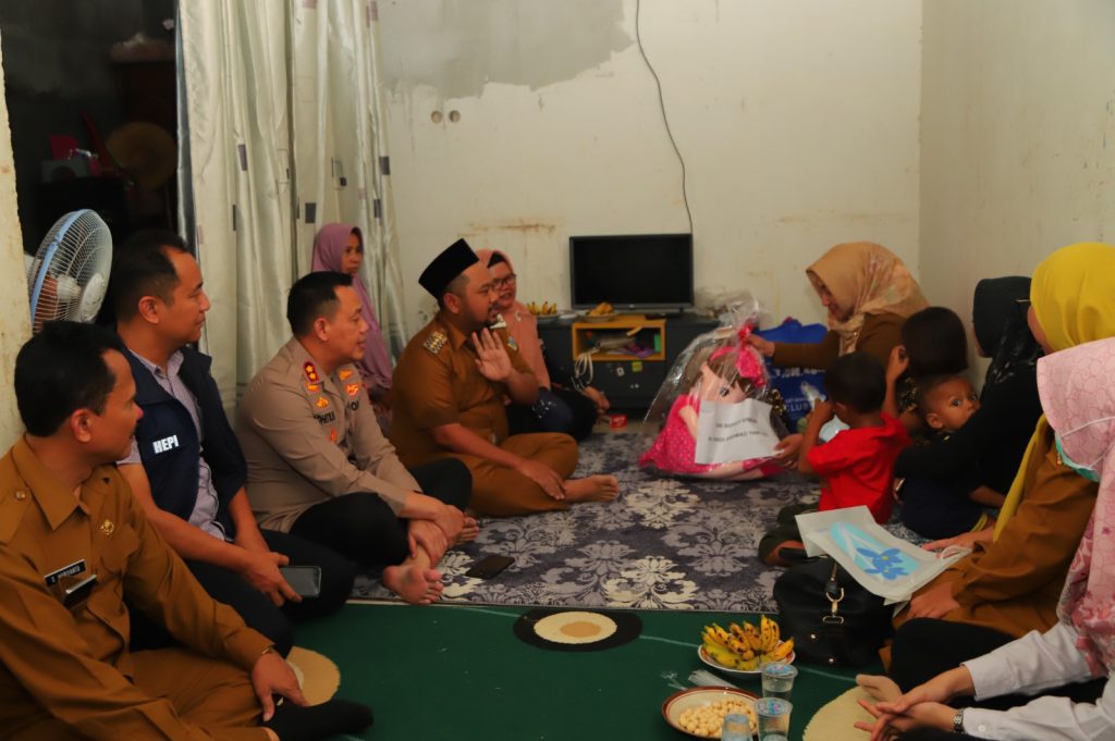 Kapolres dan Bupati membawakan mainan dan bingkisan sebagai bentuk motivasi untuk SA.