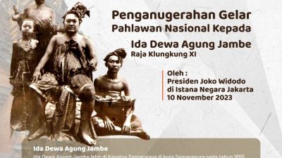 Denpasar |nusantarajayanews.id – Raja Klungkung II Ida Dewa Agung Jambe akan ditetapkan sebagai pahlawan nasional pada peringatan Hari Pahlawan 10 November 2023.