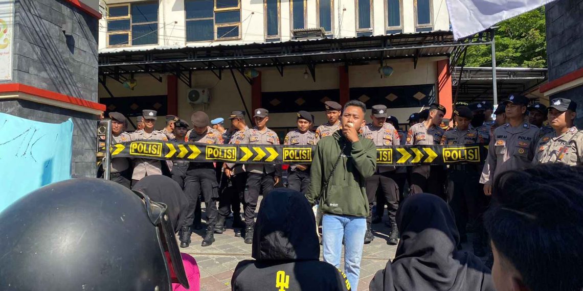Sumenep -Kepolisian Resor Sumenep melakukan Giat pengamanan aksi Unjuk Dear Jatim Korda Sumenep ke Kantor Dinas Ketahanan Pangan dan Pertanian Kab. Sumenep. Selasa (21/11/2023).