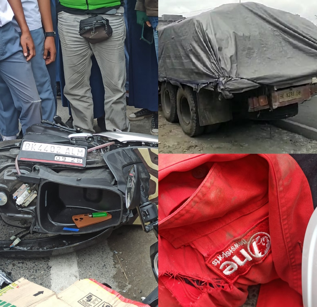 Menurut saksi mata H Sembiring, korban tewas di tempat kejadian akibat tergilas Truk dengan muatan Semen, korban datang arah Medan menuju Polsek Deli Tua. Pas di tempat kejadian perkarah (TKP) korban mendahului Truk Pengangkut Semen dari arah kiri.