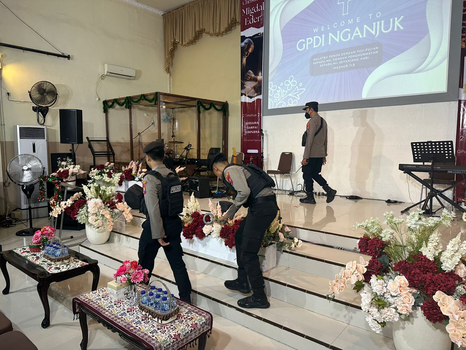 Seperti halnya yang dilaksanakan Kapolsek Nganjuk Kota, Kompol Drs. Masherly Sutrisno mengatakan Petugas melakukan pemeriksaan terhadap seluruh ruangan di dalam gereja, termasuk ruang ibadah, ruang pastoran, dan ruang penyimpanan barang, pemeriksaan juga dilakukan terhadap lingkungan sekitar gereja.