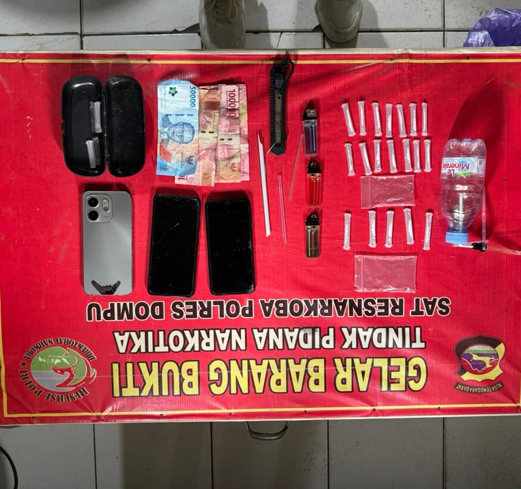“Selain menangkap tersangka, Petugas juga berhasil mengamankan barang bukti berupa 1 bungkus plastik warna kuning yang berisikan bekas rokok LA ice yang berisikan 8 paket plastik klips sabu netto ± 0,746 gram, 1 bendel plastik klip, 1 sekrop warna putih dari sedotan plastik, 1 Hp dan Uang sebesar Rp. 250.000,-.” ungkap Suria Senin (5/2/24).