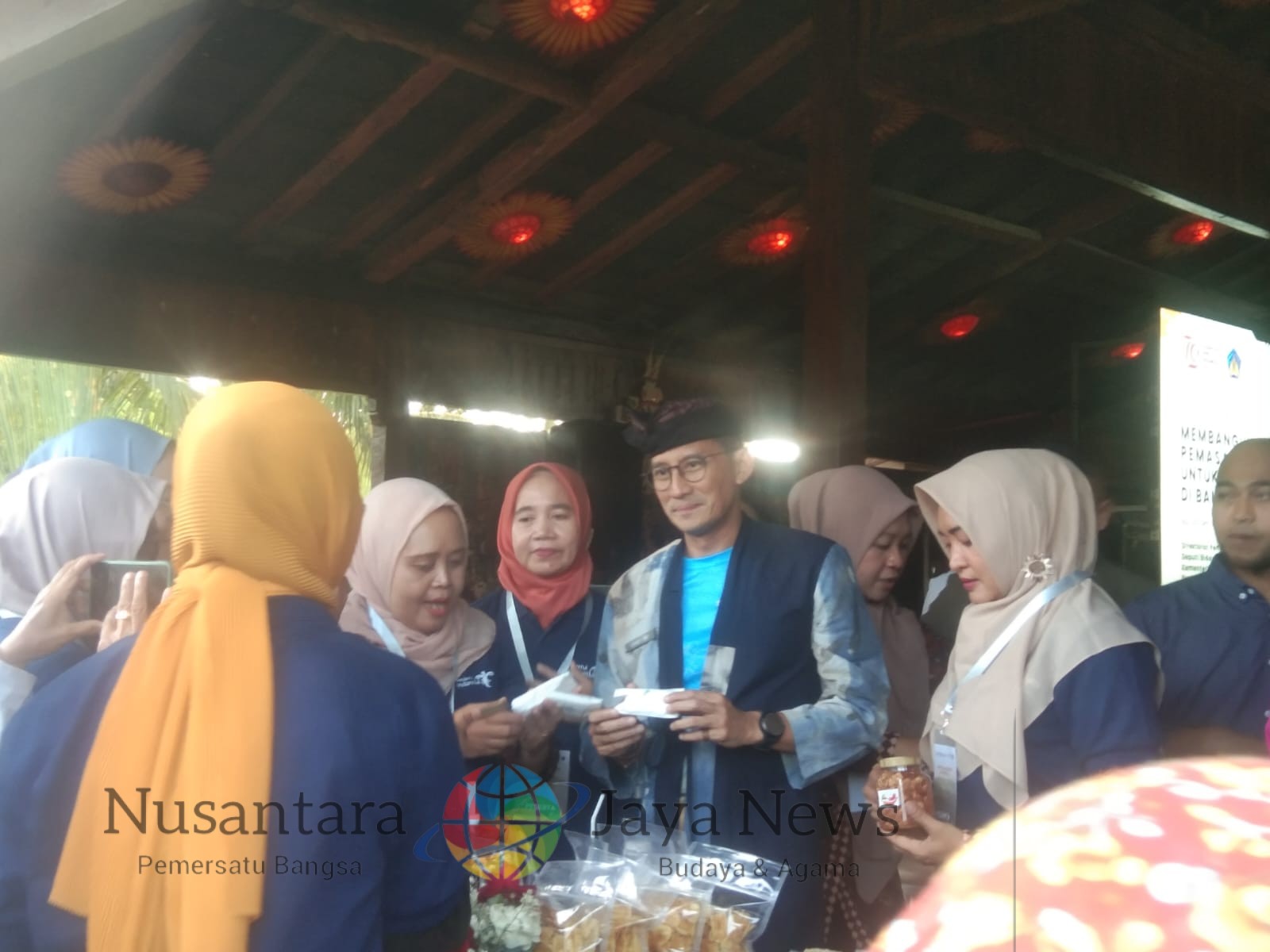 Sandiaga Uno sebelum bertikak ke acara selanjutnya menyempatkan diri mengunjungi stand UMKM serta membeli beberapa barang UMKM. (tik)