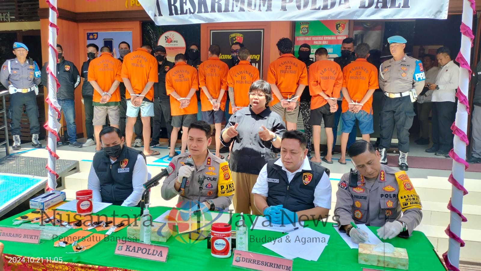 Bali | Nusantarajayanews.id – Kapolda Bali Irjen Pol Daniel Adityajaya S.H., S.I.K., M.Si., didampingi Dirreskrimum Kombes Pol Dr. Gede Adhi Mulyawarman S.I.K., S.H., M.H., beserta Wadir AKBP Ketut Suarnaya S.H., S.I.K., dan Kabid Humas Kombes Pol Jansen Avitus Panjaitan S.I.K., M.H., menyampaikan Ditreskrimum berhasil mengungkap kasus pencurian kendaraan bermotor dengan menetapkan 11 orang tersangka dan amankan 51 unit barang bukti sepeda motor berbagai merek, senin 21 oktober 2024.