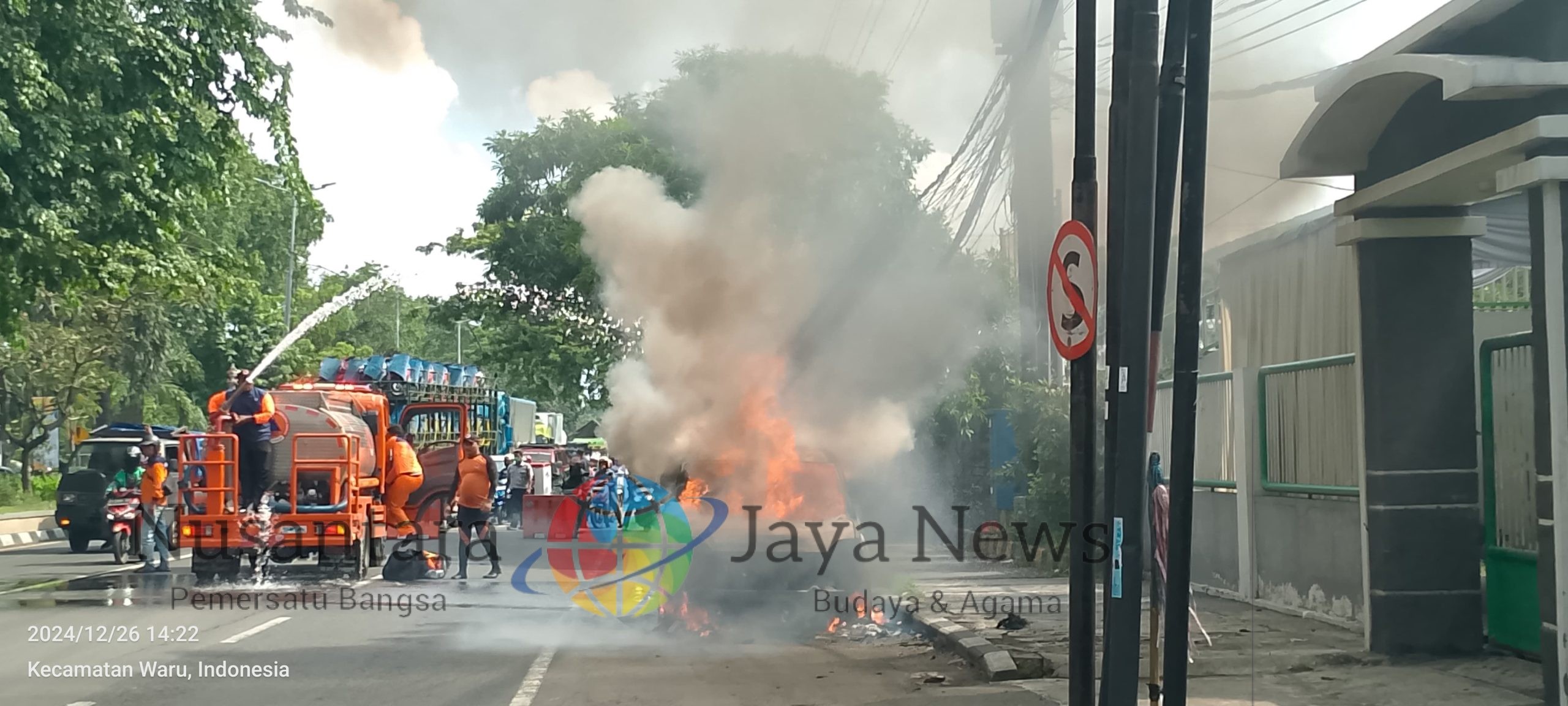 SIDOARJO | NUSANTARA JAYA NEWS – Kehebohan terjadi jalan raya atau didepan Gereja Baptis Indonesia, Waru, Sidoarjo, Kamis (26/12/2024) siang tadi sekitar pukul 14.00 WIB. Sebuah mobil berwarna hitam tiba-tiba terbakar hebat hingga hangus dan sempat meledak sebanyak tiga kali. Berdasarkan informasi sementara, kebakaran diduga disebabkan oleh rem blong yang dialami oleh mobil tersebut.
