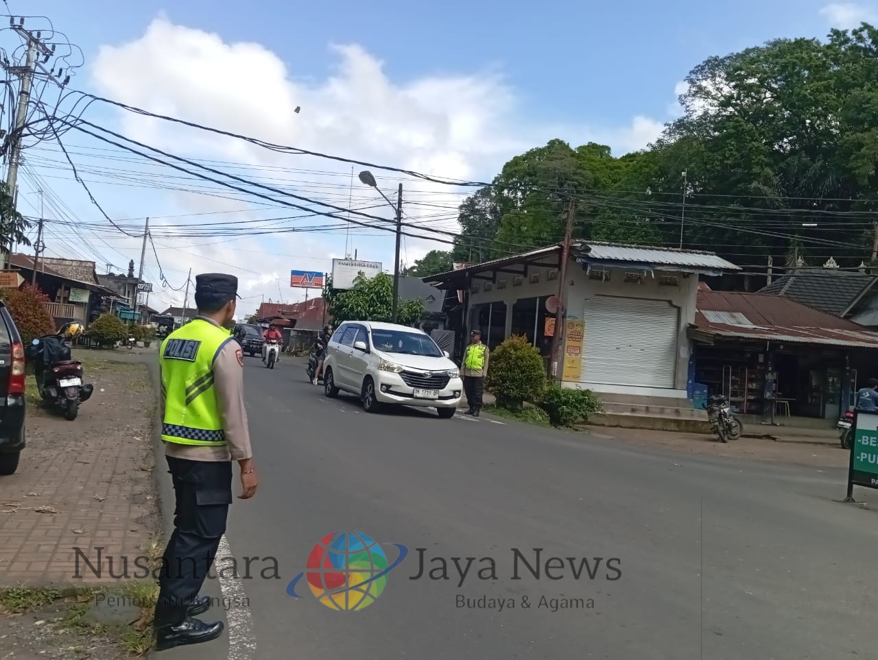 Bangli |Nusantara Jaya News – Dalam rangka mendukung kelancaran upacara piodalan di Pura Batur dan Pura Besakih, jajaran Polres Bangli bersama Polsek Susut melaksanakan pengamanan dan pengaturan lalu lintas pada Kamis, 17 April 2025 pukul 10.00 WITA di pertigaan Desa Bayunggede, Kecamatan Kintamani, Kabupaten Bangli, Bali.