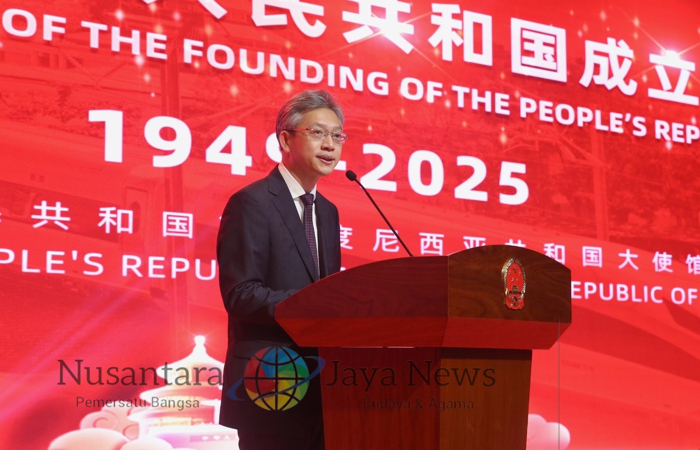 Jakarta |Nusantara Jaya News – Kedutaan Besar Republik Rakyat Tiongkok (RRT) di Indonesia menggelar resepsi meriah dalam rangka memperingati Hari Nasional ke-76 RRT. Acara ini dihadiri oleh Menteri Koordinator Bidang Infrastruktur dan Pembangunan Kewilayahan Agus Yudhoyono, para pejabat perwakilan asing, komunitas Tionghoa, serta tokoh masyarakat Indonesia.(25/9/25)