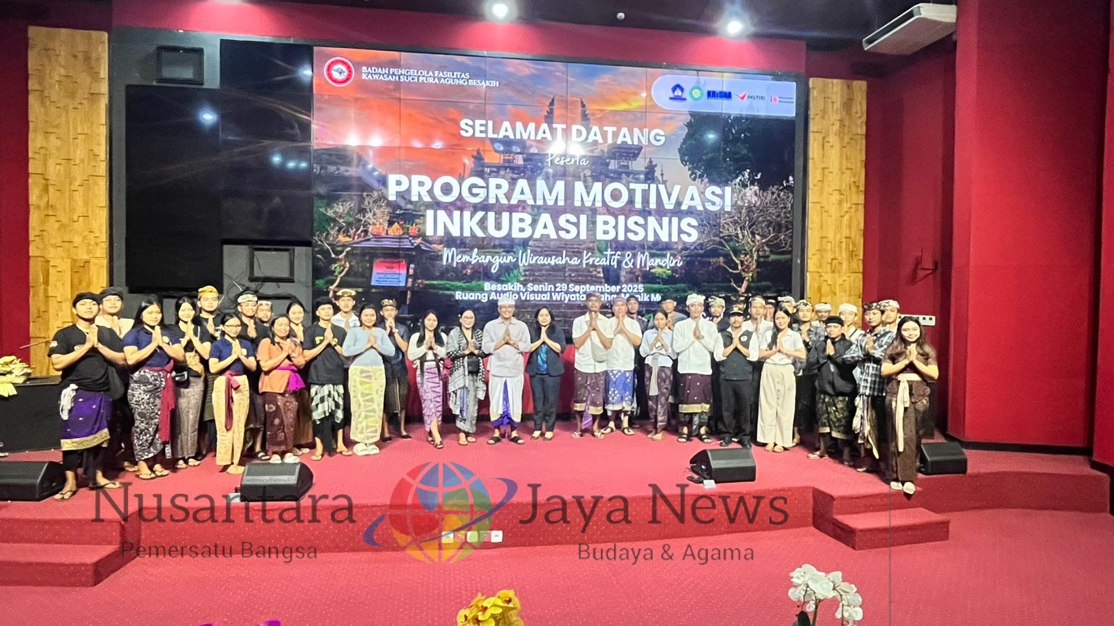 Karangasem |Nusantara Jaya News — Dalam upaya mendorong pertumbuhan ekonomi lokal dan meningkatkan semangat kewirausahaan di kalangan masyarakat, Badan Pengelola Fasilitas Kawasan Suci Pura Agung Besakih menyelenggarakan Program Motivasi Inkubasi Bisnis yang ditujukan bagi pelaku Usaha Mikro, Kecil, dan Menengah (UMKM), Yowana (generasi muda adat), serta masyarakat umum yang berminat mengembangkan usaha.