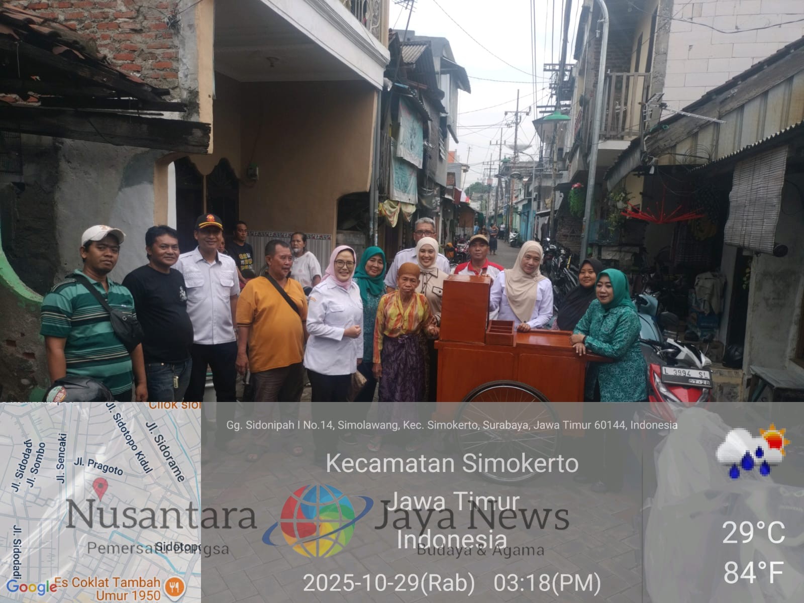 Surabaya|Nusantara Jaya News – Dalam upaya memperkuat nilai-nilai gotong royong dan kemandirian warga, Kecamatan Simokerto menyerahkan bantuan berupa rombong usaha kepada salah satu warga Kelurahan Simolawang, Runa, yang beralamat di Sidonipah I/12. Bantuan ini merupakan hasil swadaya Kecamatan Simokerto sebagai bentuk nyata dukungan terhadap program Kampung Pancasila.(29/10)