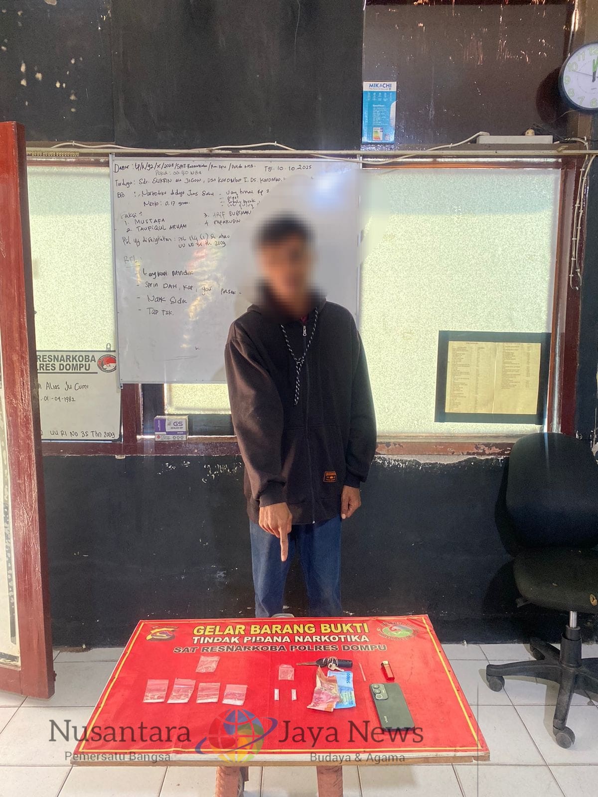 Dompu.NTB//Nusantara Jaya News – Heboh dan gaduh saat Tim Opsnal Satresnarkoba Polres Dompu berhasil menciduk seorang pria berinisial A (28) yang diduga sebagai pengedar narkotika jenis sabu kelas wahid di Dusun Kaliaga II, Desa Kadindi Barat, Kecamatan Pekat, Kabupaten Dompu, Senin (20/10/2025) dini hari.