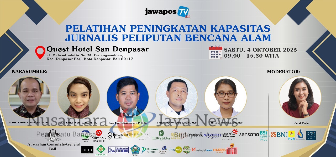 ”Pelatihan ini dirancang untuk membekali jurnalis dengan pengetahuan dan keterampilan yang relevan agar dapat menjalankan perannya secara optimal dalam konteks kesiapsiagaan bencana di Bali,” terangnya di Denpasar, 1 Oktober 2025.