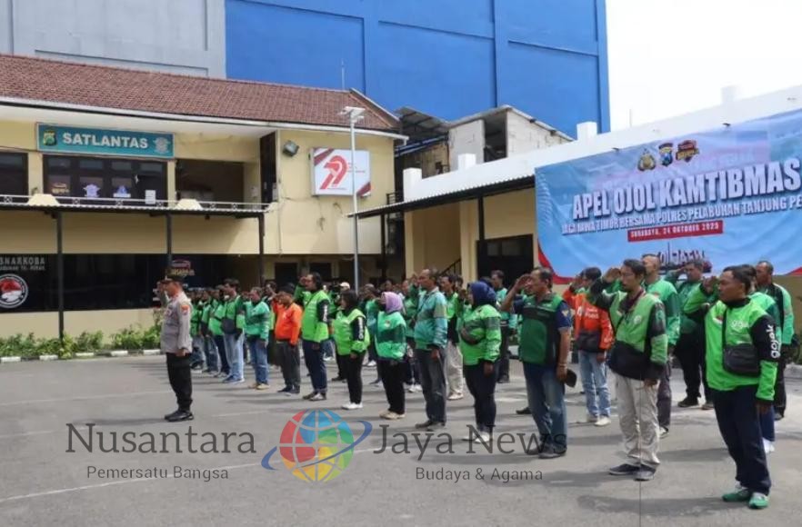 Surabaya |Nusantara Jaya News – Kebersamaan Polres Pelabuhan Tanjung Perak bersama pengemudi ojek online (ojol) berkumpul mengikuti Apel Ojol Kamtibmas, sebuah kegiatan yang menjadi simbol nyata sinergitas antara Polri dan komunitas ojol dalam menjaga keamanan dan ketertiban masyarakat di wilayah hukum Polres Pelabuhan Tanjung Perak.