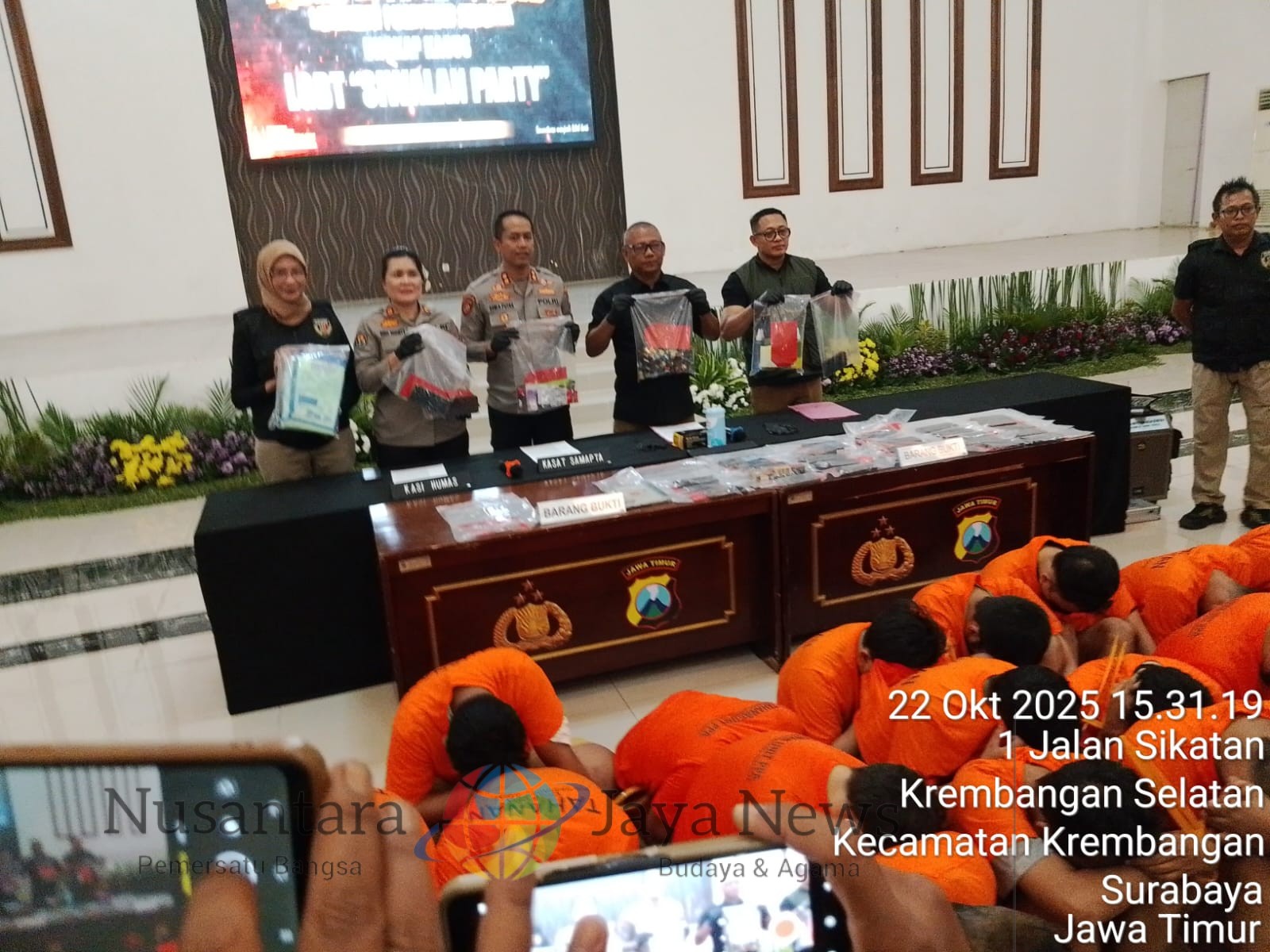 SURABAYA |Nusantara Jaya y – Polrestabes Surabaya mengungkap kasus dugaan pesta seks sesama jenis yang digelar secara terorganisir di sebuah hotel kawasan Ngagel, Surabaya pada Sabtu (18/10/2025).