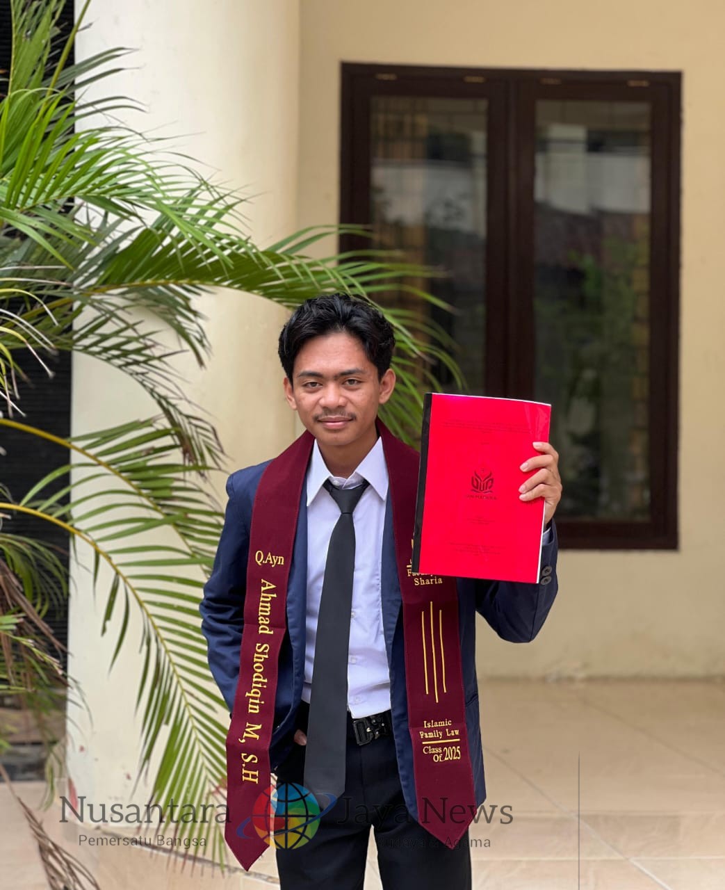 Sampang |Nusantara Jaya News – Di balik hamparan sawah di Dusun Batukarang, Kecamatan Camplong, Kabupaten Sampang, tersimpan kisah inspiratif tentang perjuangan seorang anak petani yang sukses menembus dunia akademik. Ahmad Shodiqin M, S.H., putra pertama dari pasangan Bapak Muzam dan Ibu Siti Salama, berhasil menyelesaikan pendidikan di Fakultas Syariah Universitas Islam Negeri (UIN) Madura.