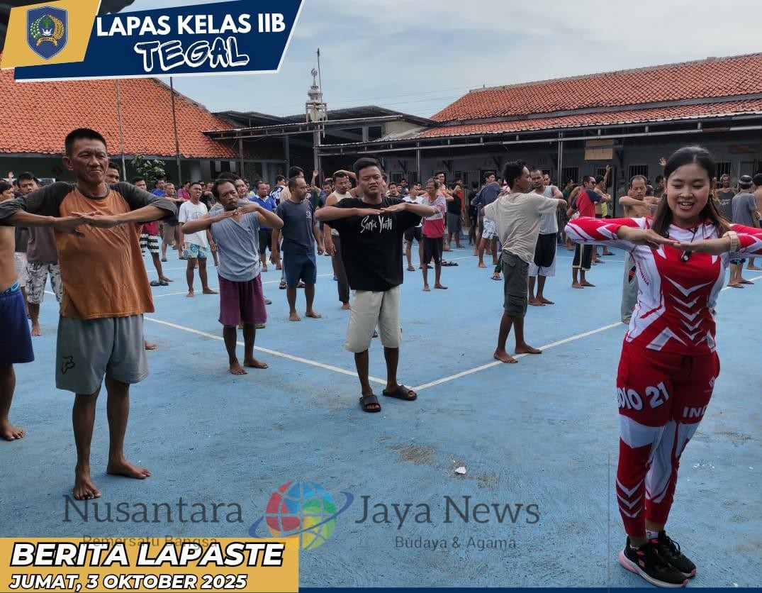 – Lembaga Pemasyarakatan Kelas IIB Tegal kembali menggelar kegiatan senam pagi bersama yang diikuti oleh seluruh Warga Binaan Pemasyarakatan (WBP) dan juga pegawai Lapas Tegal. Kegiatan rutin yang bertujuan untuk menjaga kebugaran jasmani dan rohani ini dilaksanakan di lapangan blok hunian Lapas Tegal, dengan suasana penuh semangat di pagi yang cerah.(3/10)