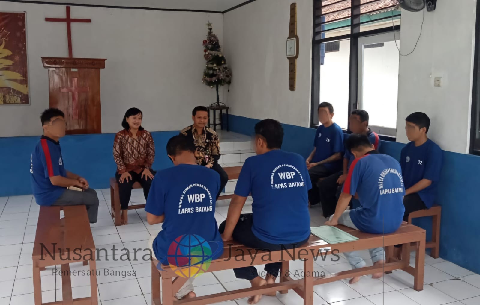 BATANG |Nusantara Jaya News – Dalam upaya menumbuhkan karakter positif dan memperkuat pembinaan kepribadian, warga binaan nasrani Lembaga Pemasyarakatan (Lapas) Kelas IIB Batang melaksanakan kegiatan peribadatan di Gereja El Sadai Lapas Batang dengan penuh khidmat. Kegiatan peribadatan ini dipandu oleh dua penyuluh agama Nasrani dari Kementerian Agama Kabupaten Batang, Rabu (29/10).