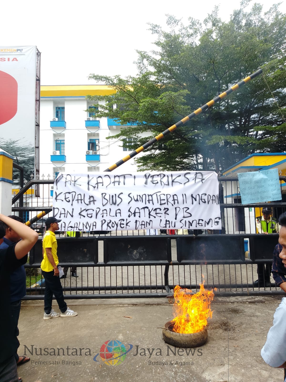 “Kami minta Kajatisu segera panggil dan periksa Satker Bendungan Lau Simeme. Kalau kejaksaan tidak bergerak, jangan-jangan kantor Kajatisu ikut tenggelam oleh proyek bermasalah ini,” sindir Ricky dalam orasinya.