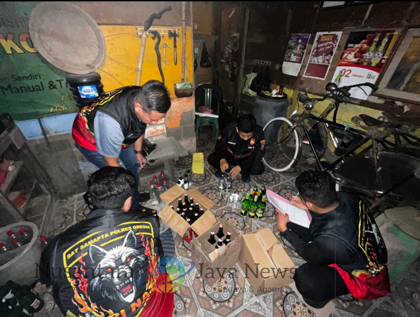 GRESIK |Nusantara Jaya News – Unit Patroli dan Pengawalan (Turjawali) Satuan Samapta Polres Gresik kembali melakukan penertiban terhadap peredaran minuman keras (miras) di wilayah Kabupaten Gresik. Dalam operasi yang digelar pada Kamis malam, 27 November 2025 sekitar pukul 22.00 WIB, petugas berhasil mengamankan dua terduga penjual miras serta menyita puluhan botol berbagai jenis sebagai barang bukti.
