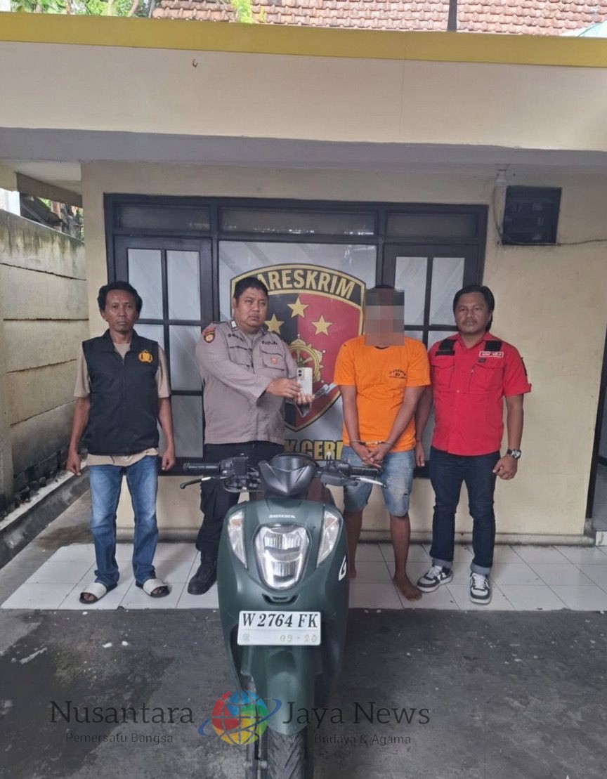 GRESIK |Nusantara Jaya News – Kinerja cepat dan sigap ditunjukkan Unit Reskrim Polsek Cerme Polres Gresik. Hanya dalam waktu kurang dari satu jam setelah menerima laporan, petugas berhasil mengamankan pelaku pencurian sepeda motor (curanmor) di wilayah Cerme, Kabupaten Gresik.