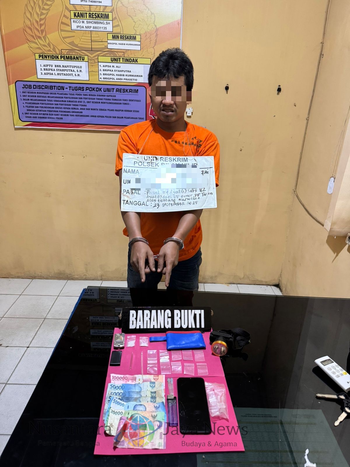 LABUHANBATU|nusantara jaya news-Polsek Bilah Hilir Polres Labuhanbatu kembali menunjukkan komitmennya dalam memberantas peredaran gelap narkotika di wilayah hukumnya. Unit Reskrim Polsek Bilah Hilir berhasil mengamankan seorang pria terduga pengedar sabu pada Minggu (23 November 2025), sekira pukul 17.00 WIB di Dusun Tanjung Harapan B, Desa Tanjung Harapan, Kecamatan Pangkatan, Kabupaten Labuhanbatu. Senin (24/11/2025)