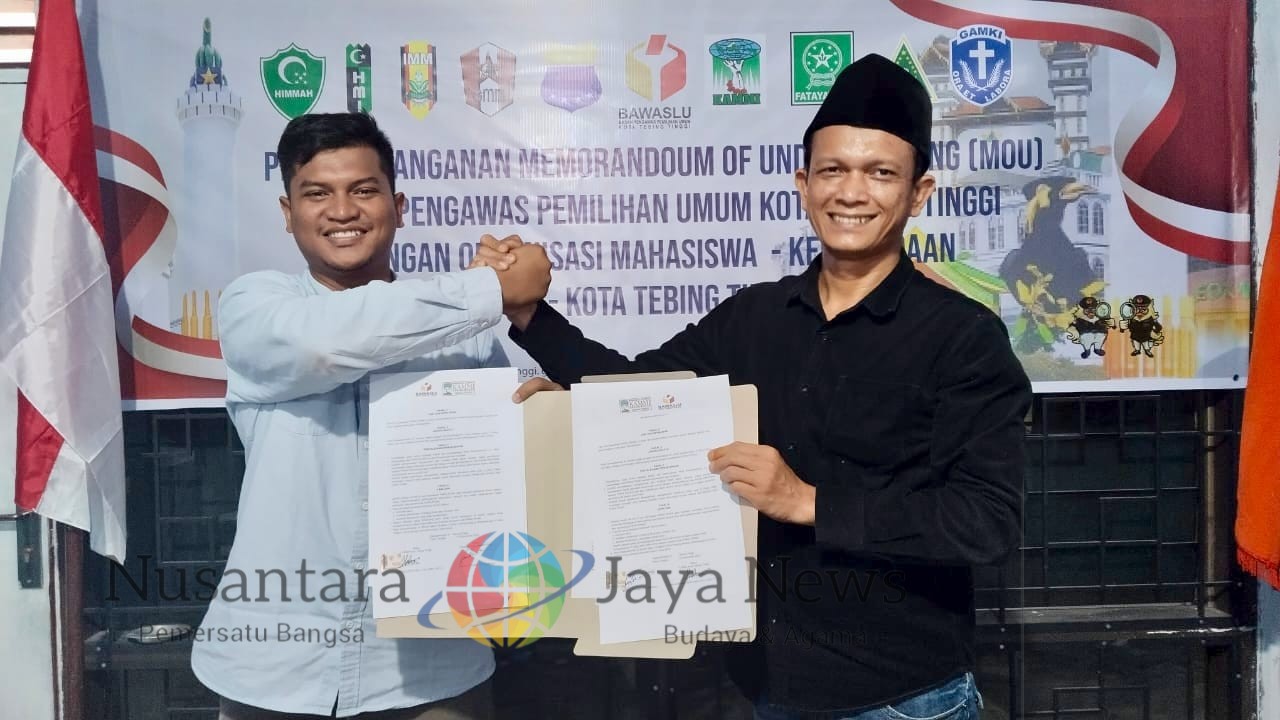 Tebing Tinggi |Nusantara Jaya News – Pengurus Daerah Kesatuan Aksi Mahasiswa Muslim Indonesia (PD KAMMI) Serdang Bedagai – Tebing Tinggi resmi menandatangani Nota Kesepahaman (Memorandum of Understanding/MoU) dengan Badan Pengawas Pemilihan Umum (Bawaslu) Kota Tebing Tinggi pada hari Rabu (19/11) Penandatanganan ini dilakukan bersama sejumlah organisasi kemahasiswaan dan kepemudaan se-Kota Tebing Tinggi sebagai bentuk komitmen bersama dalam mengawal penyelenggaraan pemilu yang jujur, adil, dan berintegritas.