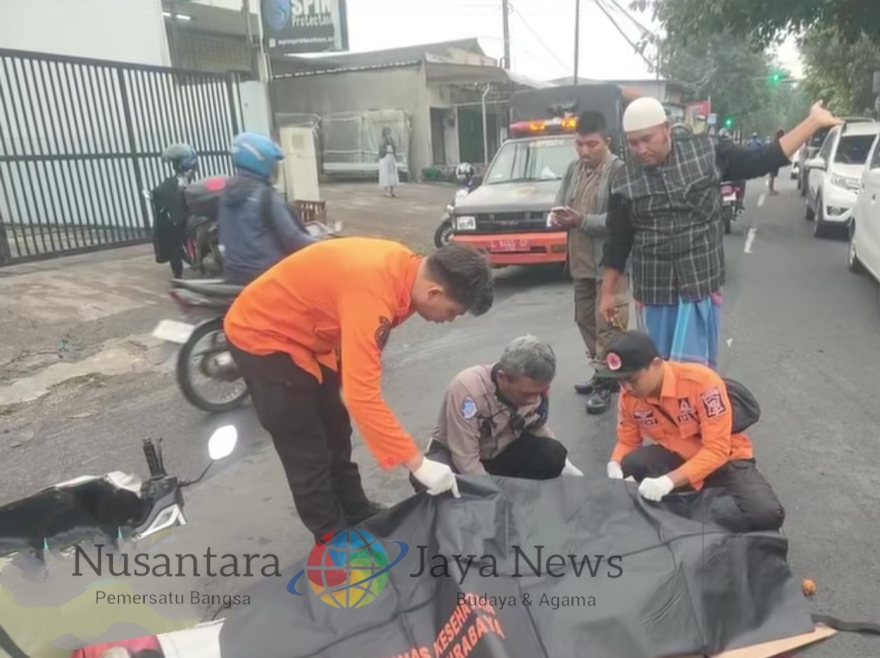 Surabaya |Nusantara Jaya News — Kecelakaan tunggal terjadi di Jalan Raya Menganti, Surabaya, pada Senin pagi (11/11/2025) sekitar pukul 05.16 WIB. Insiden tersebut menewaskan seorang pria pengendara sepeda motor berinisial GA (45) yang diketahui merupakan warga asal Lamongan.