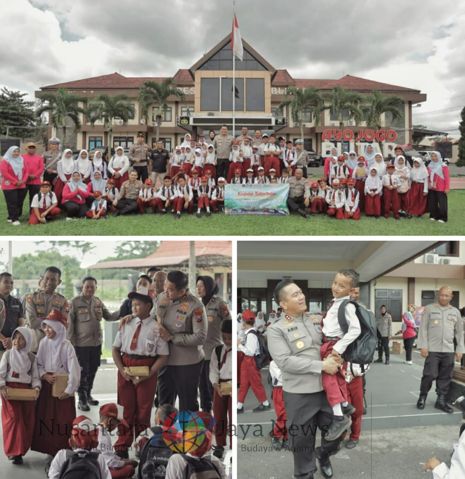 Blitar |Nusantara Jaya News – Kapolres Blitar AKBP Arif Fazlurrahman bersama Pejabat Utama Polres Blitar menerima kunjungan siswa-siswi SD Negeri Pojok 01 Kabupaten Blitar dalam kegiatan kunjungan sekolah dan pembelajaran lapangan di Mapolres Blitar.