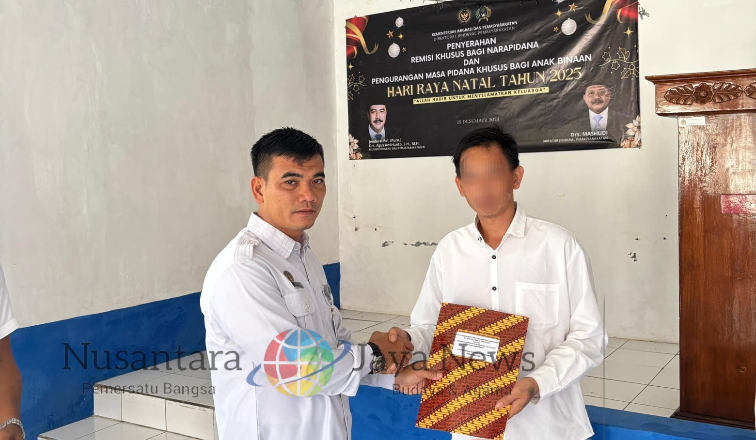 Batang |Nusantara Jaya News – Lembaga Pemasyarakatan (Lapas) Kelas IIB Batang melaksanakan kegiatan Penyerahan Remisi Khusus Hari Raya Natal Tahun 2025 kepada warga binaan nasrani, Kamis (25/12). Kegiatan ini merupakan bentuk penghargaan negara atas perilaku baik serta partisipasi aktif warga binaan dalam mengikuti program pembinaan selama menjalani masa pidana.