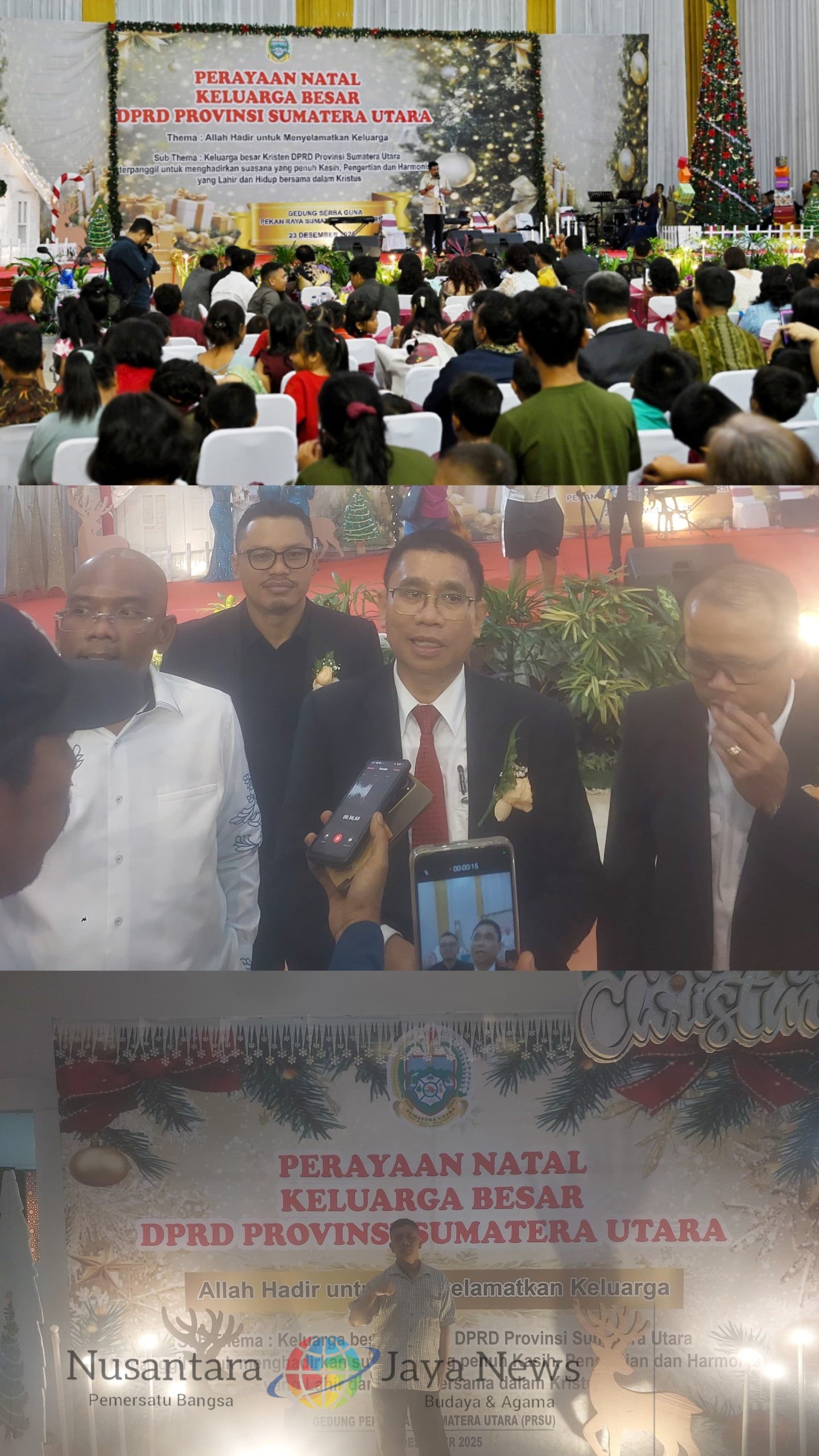 Medan |Nusantara Jaya News — Gubernur Sumatera Utara (Sumut) Muhammad Bobby Afif Nasution menghadiri Perayaan Natal Keluarga Besar Dewan Perwakilan Rakyat Daerah (DPRD) Sumut yang digelar di Gedung Serbaguna Pekan Raya Sumatera Utara (PRSU), Jalan Gatot Subroto, Medan, Selasa (23/12/2025). Perayaan Natal berlangsung khidmat dan penuh kebersamaan dengan mengusung tema “Allah Hadir untuk Menyelamatkan Keluarga”.