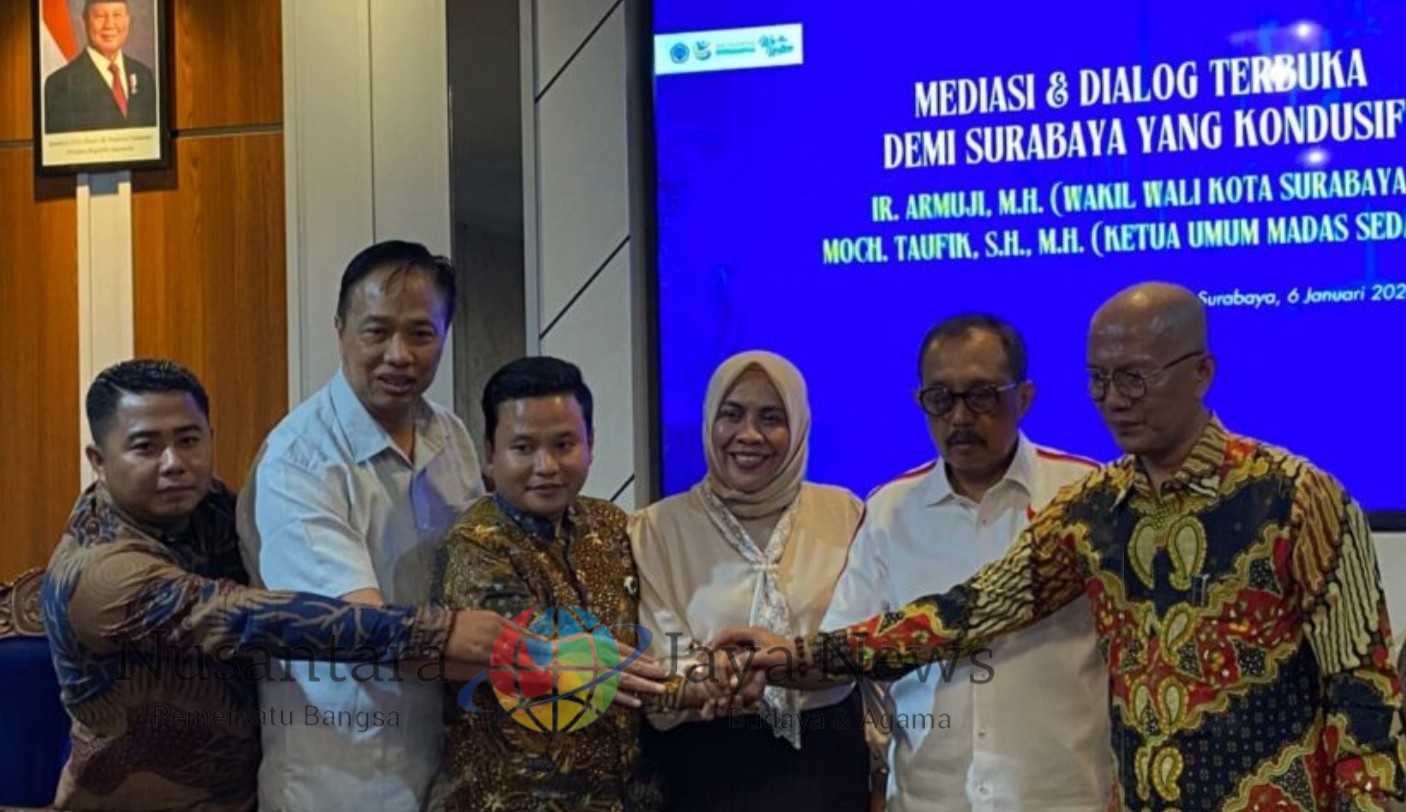 Surabaya |Nusantara Jaya News – Wakil Wali Kota Surabaya Armuji dan organisasi masyarakat Madura Asli Sedarah (Madas) akhirnya sepakat menempuh jalur damai atas perkara laporan yang sebelumnya bergulir di Mapolda Jawa Timur. Kesepakatan tersebut tercapai setelah kedua belah pihak menggelar mediasi resmi yang berlangsung di Universitas Dr. Soetomo (Unitomo) Surabaya, Selasa (6/1/2026).