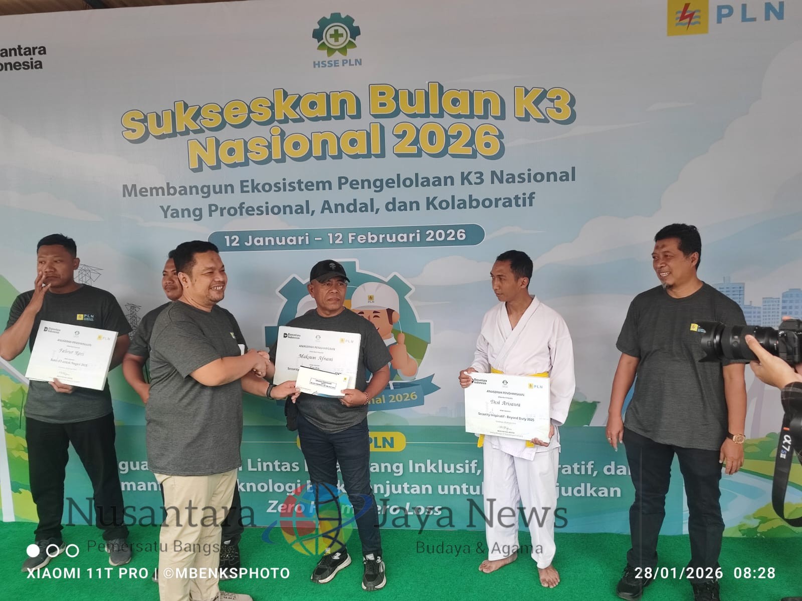 SURABAYA,* 28 Januari 2026 — Dalam rangka memperingati Bulan Keselamatan dan Kesehatan Kerja (K3) Nasional 2026, PT PLN (Persero) menganugerahkan Penghargaan Beyond Duty 2026 kepada empat Tenaga Alih Daya (TAD) yang dinilai menunjukkan dedikasi, integritas, serta kinerja inspiratif di luar tugas pokoknya.