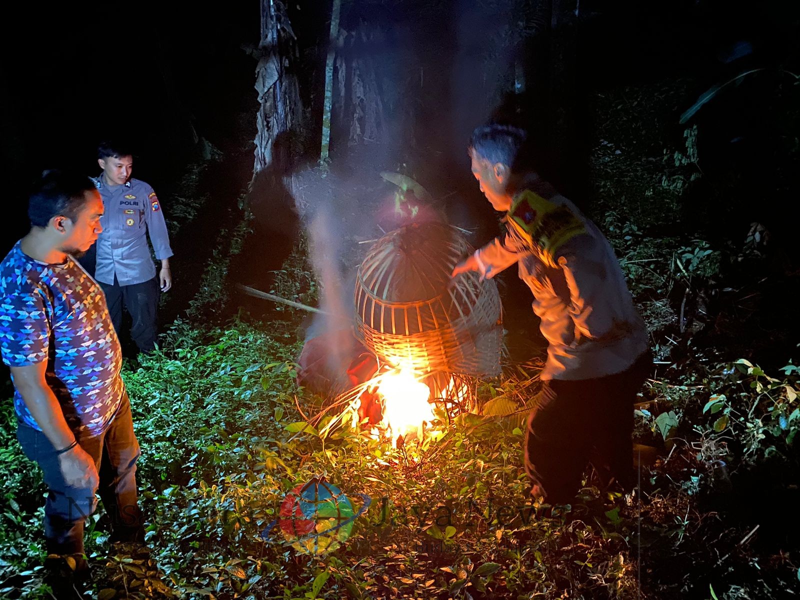 Selanjutnya, petugas langsung melakukan pembongkaran dan pembakaran sarana tersebut.