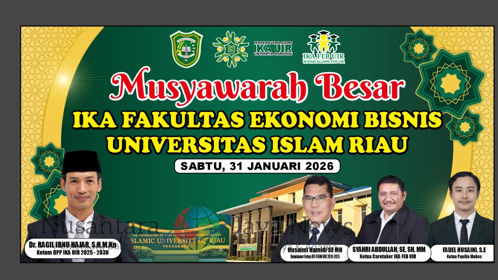 Pekanbaru |Nusantara Jaya News — Ikatan Keluarga Alumni Fakultas Ekonomi dan Bisnis Universitas Islam Riau (IKA FEB UIR) sukses menyelenggarakan Musyawarah Besar (Mubes) yang berlangsung khidmat dan penuh kebersamaan. Dalam forum tertinggi organisasi tersebut, Syahri Abdullah, S.E., S.H., M.M. secara resmi terpilih sebagai Ketua IKA FEB UIR Periode 2025–2030. (31/1)