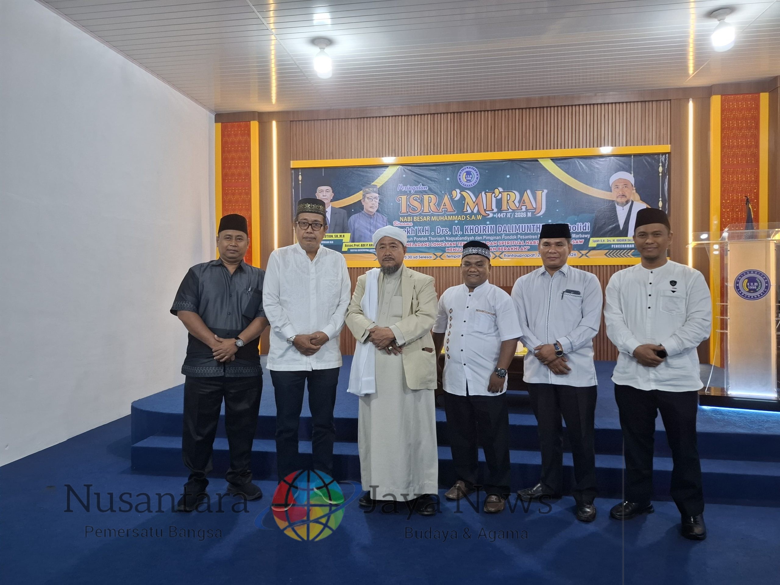 Labuhanbatu |Nusantara Jaya News – Universitas Labuhanbatu (ULB) menggelar peringatan Isra’ Mi’raj Nabi Muhammad SAW 1447 Hijriah pada Senin,(26/1/2026, di Aula Mini Baru Universitas Labuhanbatu. Kegiatan ini mengusung tema “Meneladani Loncatan Teknologi dan Spiritual Nabi Muhammad SAW Menuju Peradaban Berakhlak”.