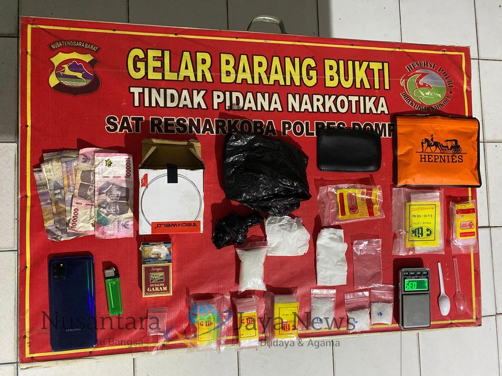 Penangkapan tersebut dilakukan oleh Tim Opsnal Satresnarkoba Polres Dompu setelah menerima informasi dari masyarakat terkait maraknya dugaan aktivitas peredaran narkotika jenis sabu di lokasi tersebut. Dari hasil penggeledahan, petugas berhasil mengamankan narkotika jenis sabu-sabu dengan berat bruto 81,60 gram, beserta sejumlah barang bukti pendukung lainnya.