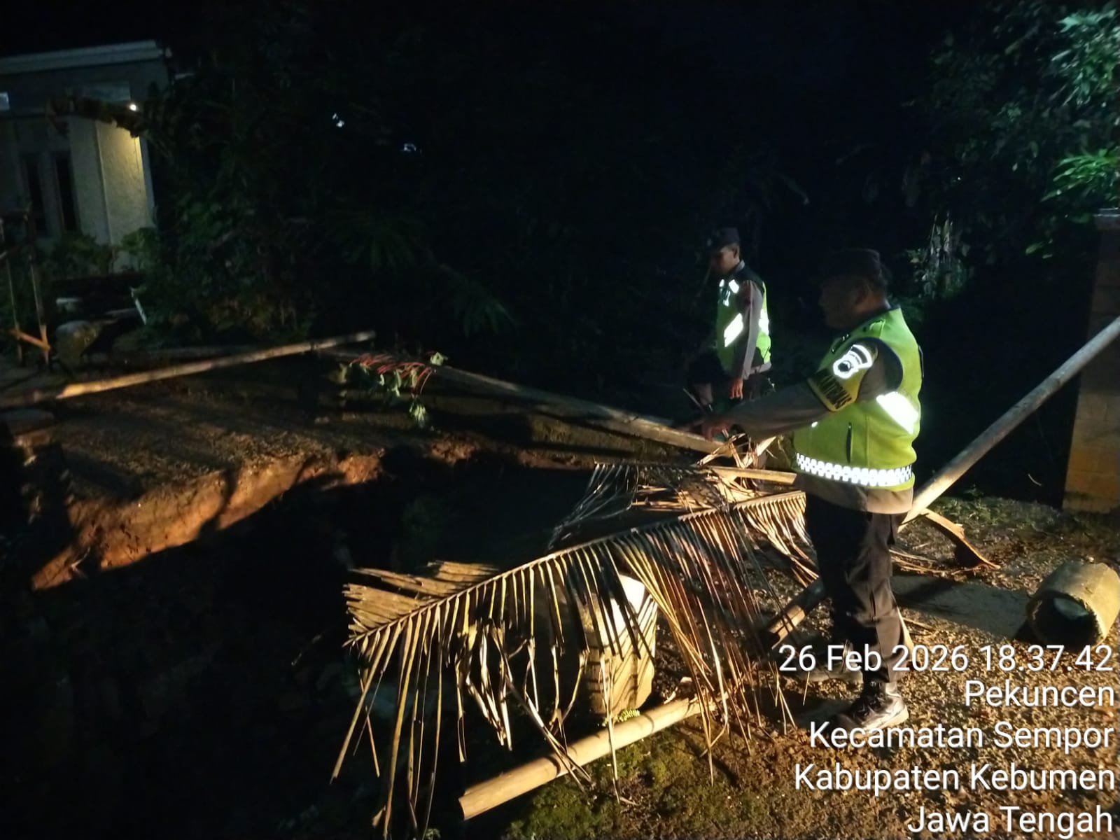 Kebumen |Nusantara Jaya News — Jembatan penghubung antara Makam Desa Pekuncen dan Cagar Budaya Banyak Wide di Kecamatan Sempor, Kabupaten Kebumen, ambruk pada Kamis petang, 26 Februari 2026.
