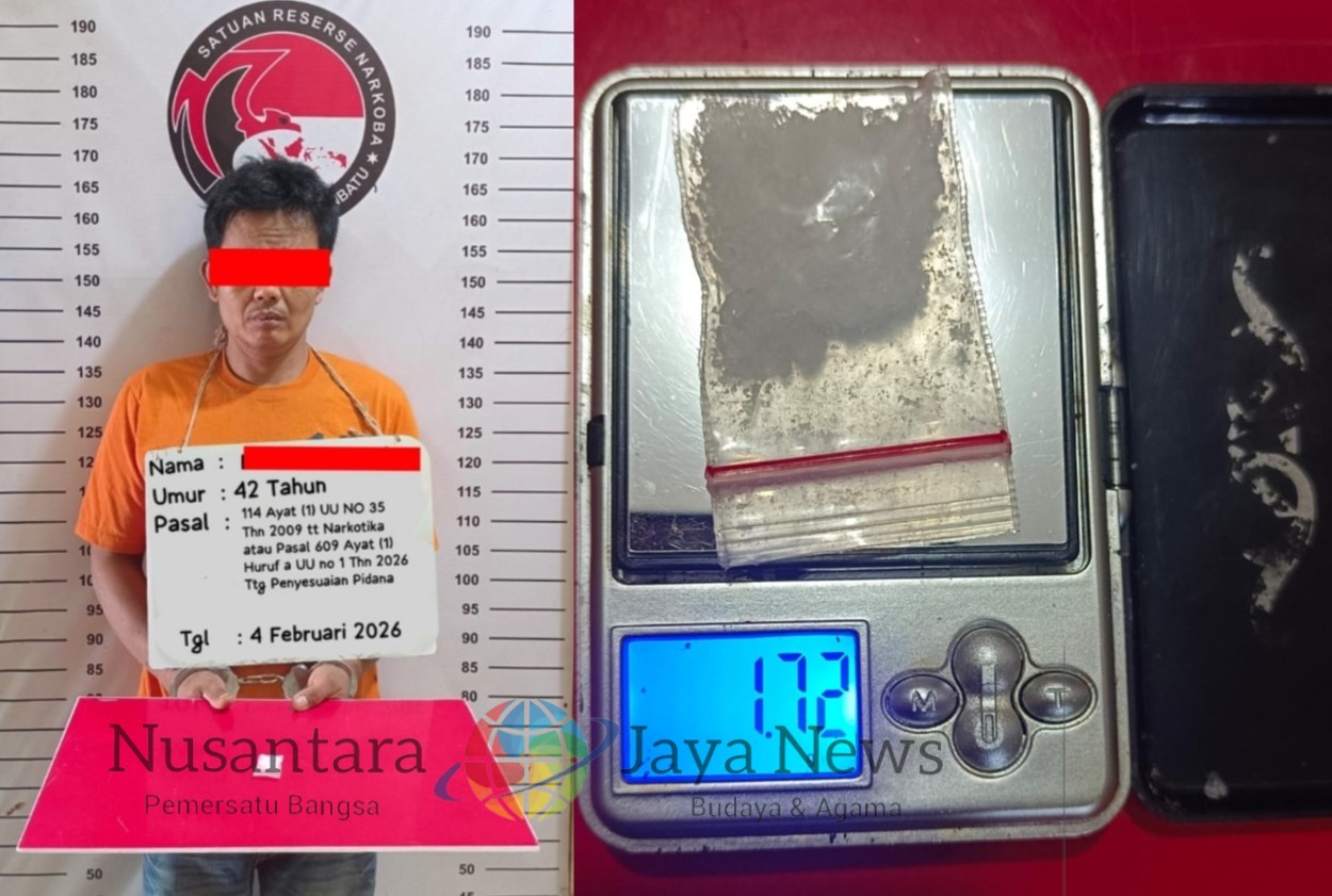 Labuhanbatu|Nusantara Jaya News — Polres Labuhanbatu melalui Satres Narkoba kembali menunjukkan taringnya dalam memberantas peredaran narkotika di wilayah hukumnya. Seorang laki-laki berinisial MT (42) diamankan di sebuah pondok di perkebunan sawit Bilah Barat dengan barang bukti sabu seberat 1,72 gram.