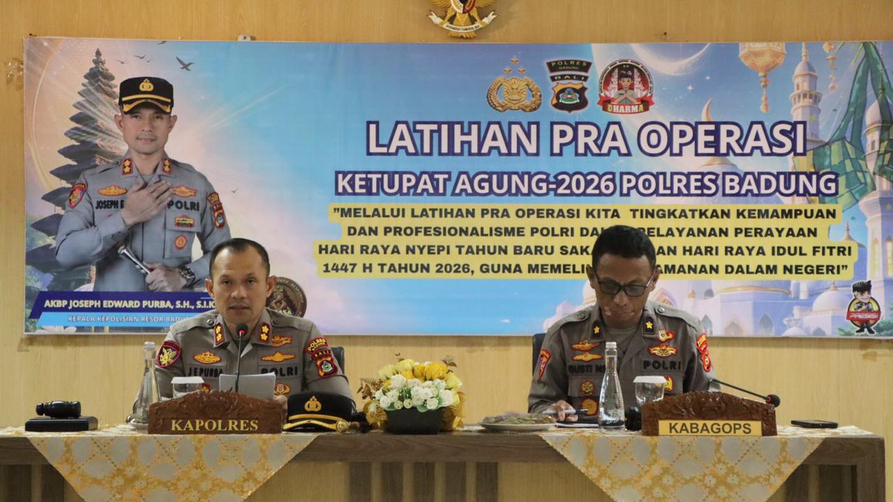Upacara pembukaan latihan pra operasi tersebut dipimpin langsung oleh Kapolres Badung, Joseph Edward Purba. Dalam arahannya, Kapolres menegaskan bahwa Operasi Kepolisian Terpusat dengan sandi Operasi Ketupat Agung 2026 akan dilaksanakan selama 13 hari, mulai tanggal 13 hingga 25 Maret 2026.