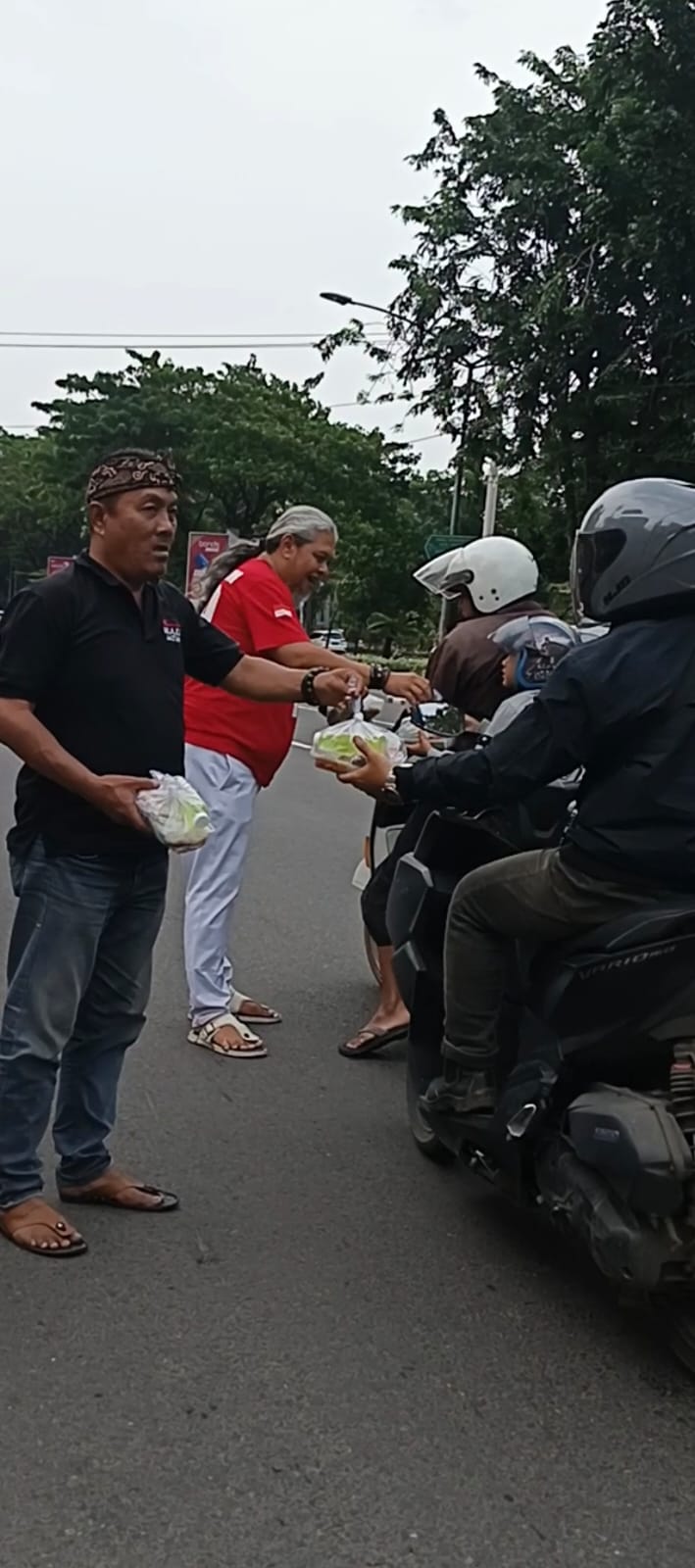 Sebanyak 250 paket takjil dibagikan kepada masyarakat yang melintas, khususnya para pengguna jalan yang tengah bersiap berbuka puasa.