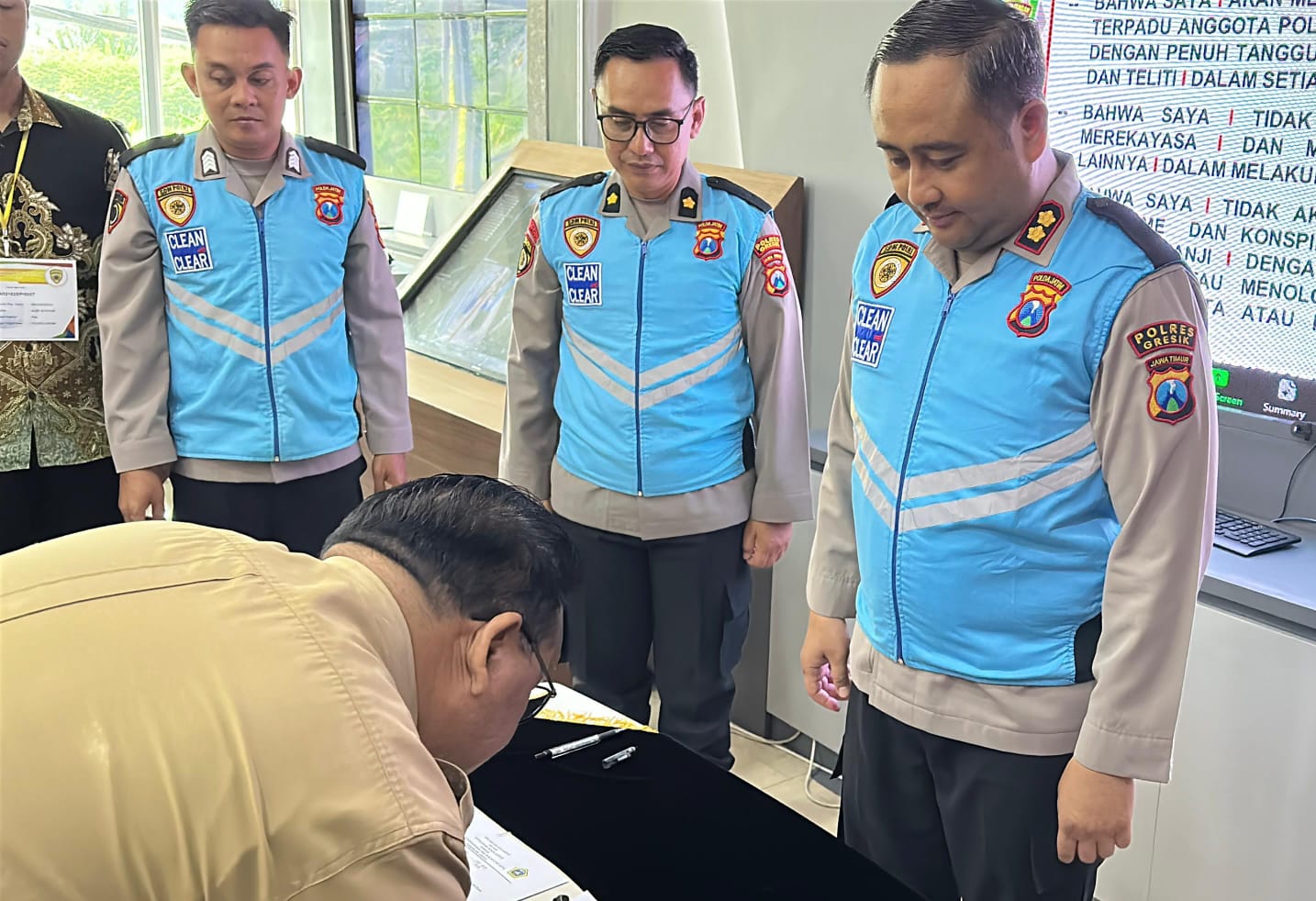 GRESIK |Nusantara Jaya News – Komitmen menghadirkan rekrutmen anggota Polri yang bersih dan transparan kembali ditegaskan Polres Gresik melalui penandatanganan Nota Kesepahaman (MoU) dan Pakta Integritas Penerimaan Terpadu Tahun Anggaran 2026, Selasa (31/3/2026). Dalam kegiatan yang melibatkan berbagai instansi lintas sektor tersebut, Polres Gresik mengusung prinsip Bersih, Transparan, Akuntabel, dan Humanis (BETAH), guna memastikan seluruh tahapan seleksi berjalan objektif dan bebas dari praktik kecurangan.