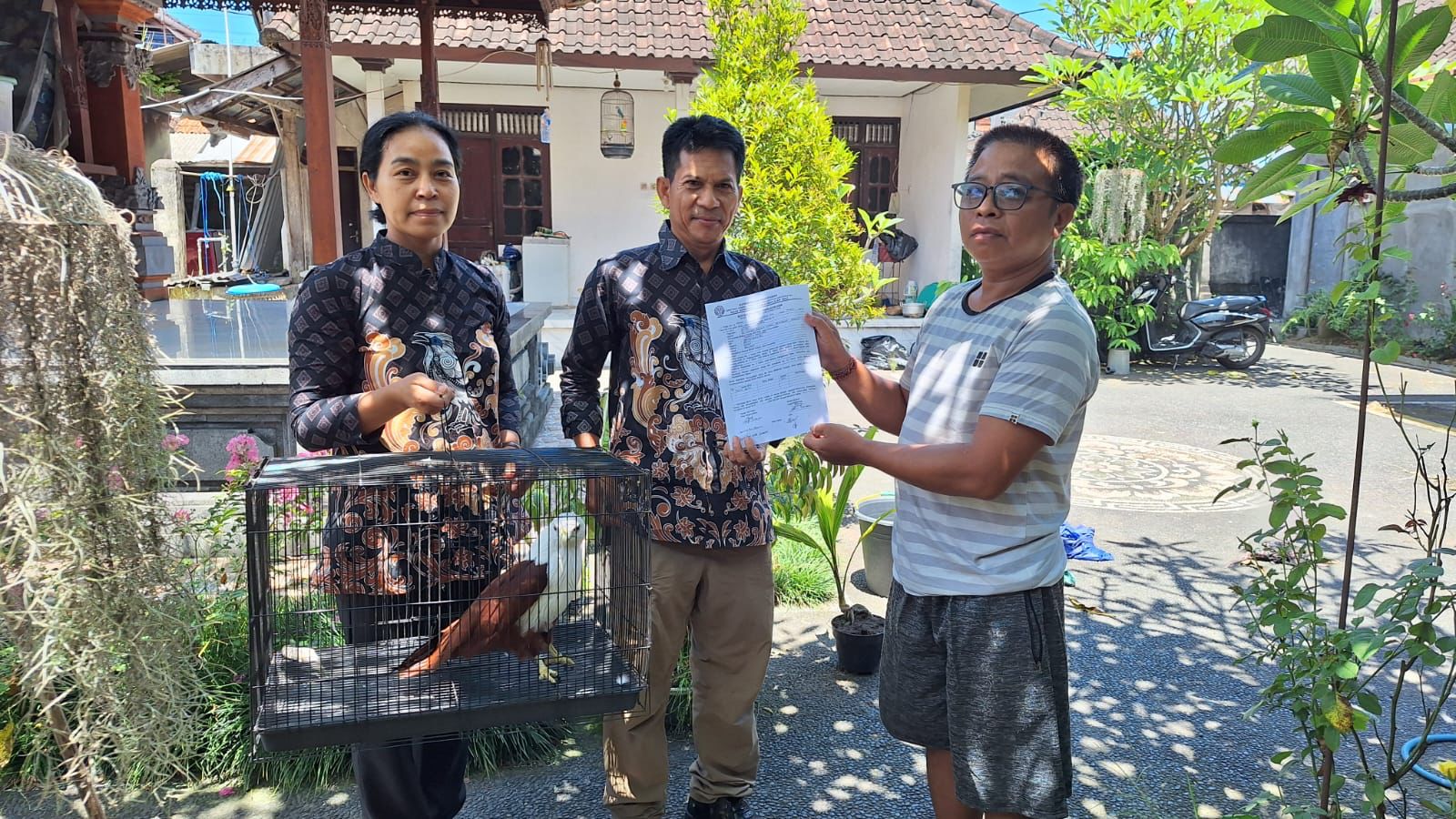 Denpasar |Nusantara Jaya News – Sebagai respons atas laporan masyarakat, Balai KSDA Bali melalui Tim Wildlife Rescue Unit (WRU) melakukan evakuasi satu ekor Elang Bondol (Haliastur indus)dari rumah warga bernama I Wayan Suwartana yang berasal dari Banjar Mambal Kajanan, Desa Mambal, Kecamatan Abiansemal, Kabupaten Badung pada hari Selasa (31/3).